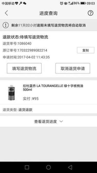 隨后,王女士也表示,網(wǎng)上公布的說明文件除中文說明外,其余證明資料均字跡不清,希望蜜芽方面能提供清晰的說明原件。4月2日,蜜芽告知王女士,由于一些原因,無法提供原件。同時蜜芽客服也表示,作為最終的處理結(jié)果,王女士除了能無條件退貨退款外,蜜芽網(wǎng)還將贈送王女士一張50元的優(yōu)惠券。王女士在電話中表示,沒有一個明確的解釋,自己是不會認(rèn)可蜜芽的處理結(jié)果的。4月2日下午,王女士的蜜芽賬戶中突然多了50元的優(yōu)惠券,并且自己購買核桃油的訂單狀態(tài)自動變成了“退貨退款”。
